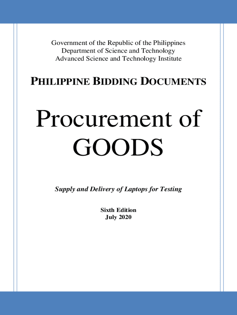 Government of the Republic of the Philippines Department of Science and Technology Advanced Science and Technology InstitutePHILIPPINE BIDDING DOCUMENTSProcurement of GOODS Supply and Delivery of