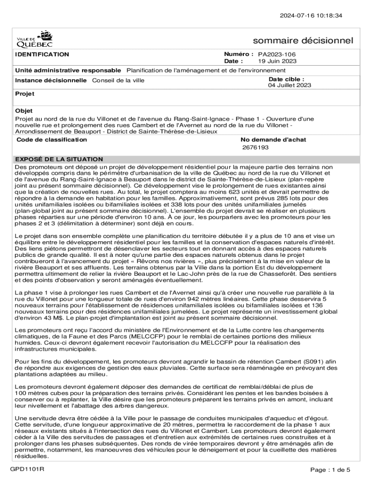 20240716 10:18:34sommaire dcisionnel IDENTIFICATIONNumro : PA2023106 Date : 19 Juin 2023Unit administrative responsable Planification de l\'amnagement et de l\'environnement Instance dcisionnelle