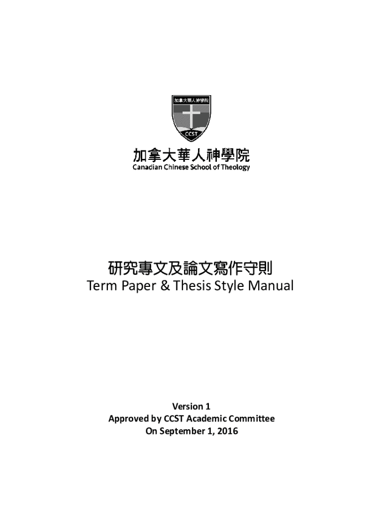Term Paper & Thesis Style ManualVersion 1 Approved by CCST Academic Committee On September 1, 2016 ..1..1(Fonts)...1(Line Spacing)..2(Margins)