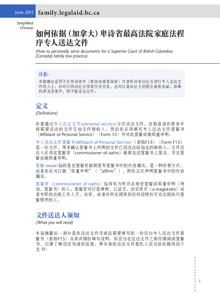 June 2011 Simplified Chinesefamily.legalaid.bc.ca (How to personally serve documents for a Supreme Court of British Columbia (Canada) family law process): (Definitions)