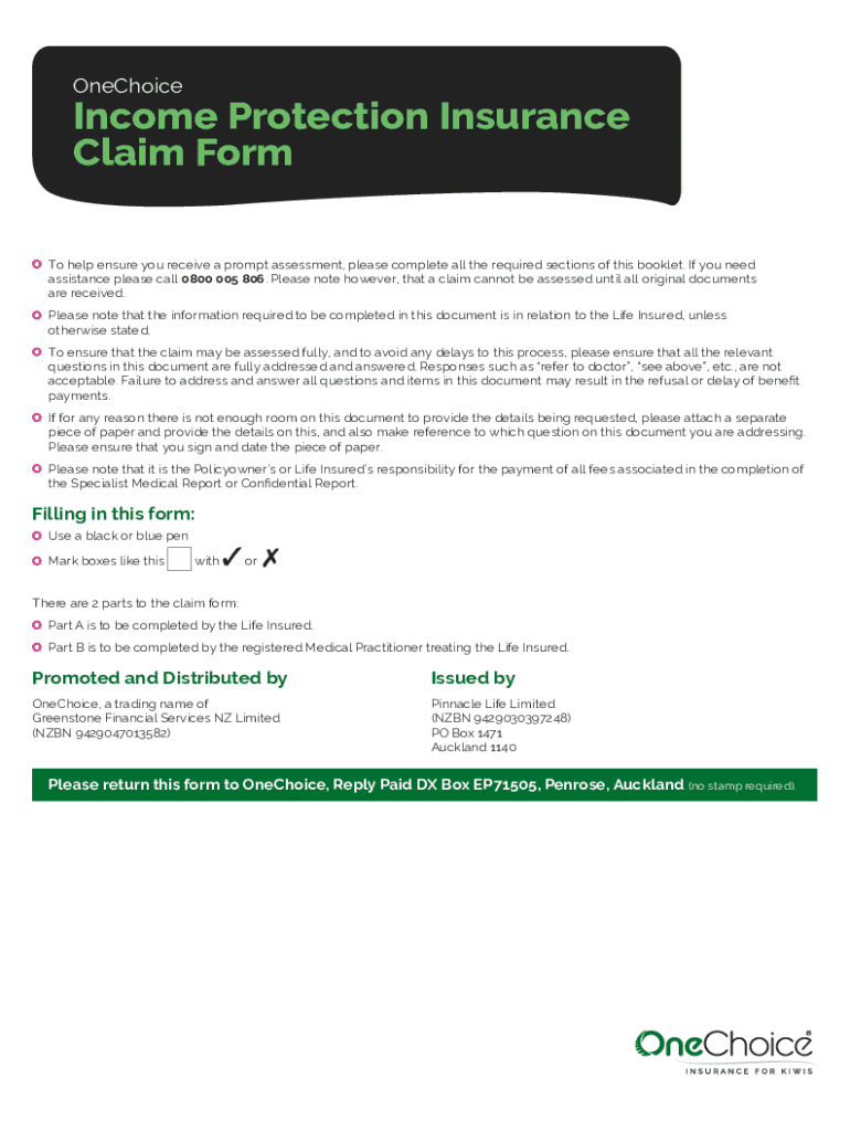 OneChoiceIncome Protection Insurance Claim FormTo help ensure you receive a prompt assessment, please complete all the required sections of this booklet. If you need assistance please call 0800 005