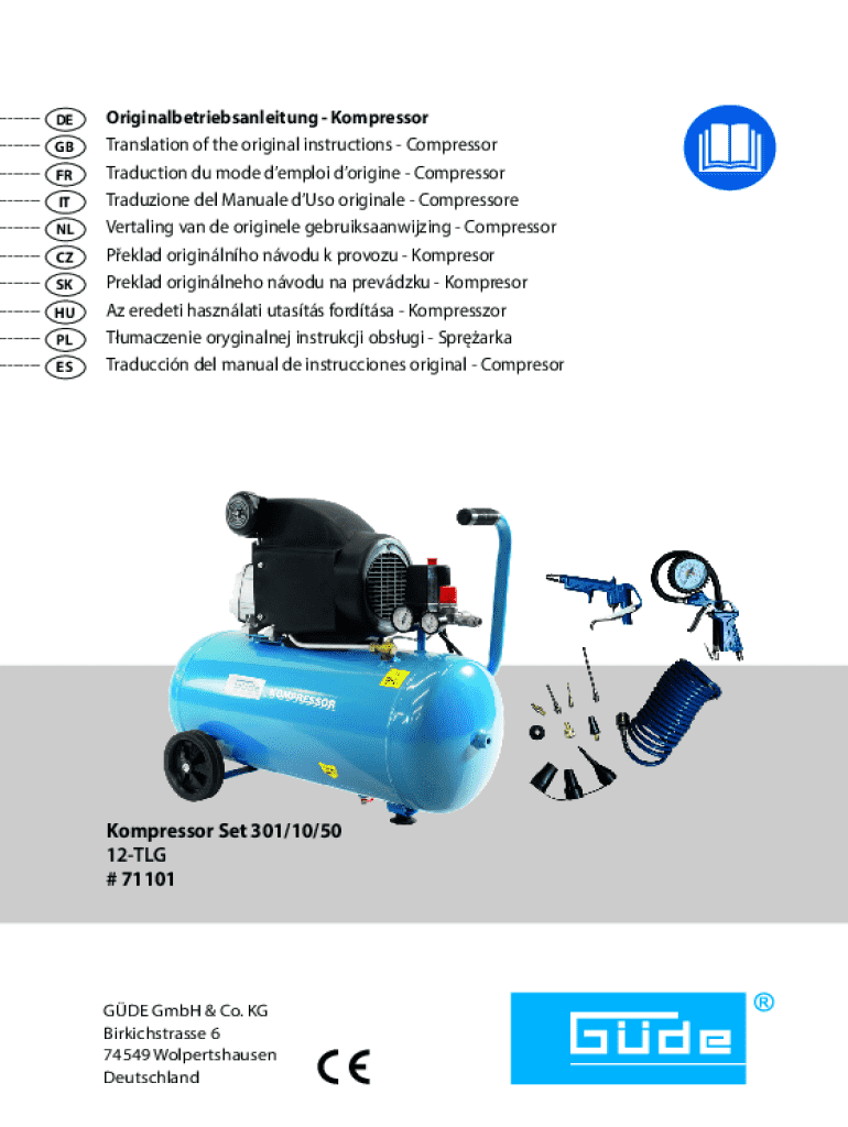 DE GB FR IT NL CZ SK HU PL ESOriginalbetriebsanleitung Kompressor Translation of the original instructions Compressor Traduction du mode demploi dorigine Compressor Traduzione del Manuale dUso originale
