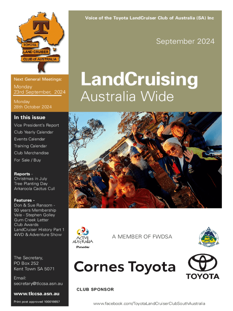 Voice of the Toyota LandCruiser Club of Australia (SA) IncSeptember 2024Next General Meetings:Monday 23rd September, 2024 Monday 28th October 2024LandCruising Australia WideIn this issue Vice Presidents