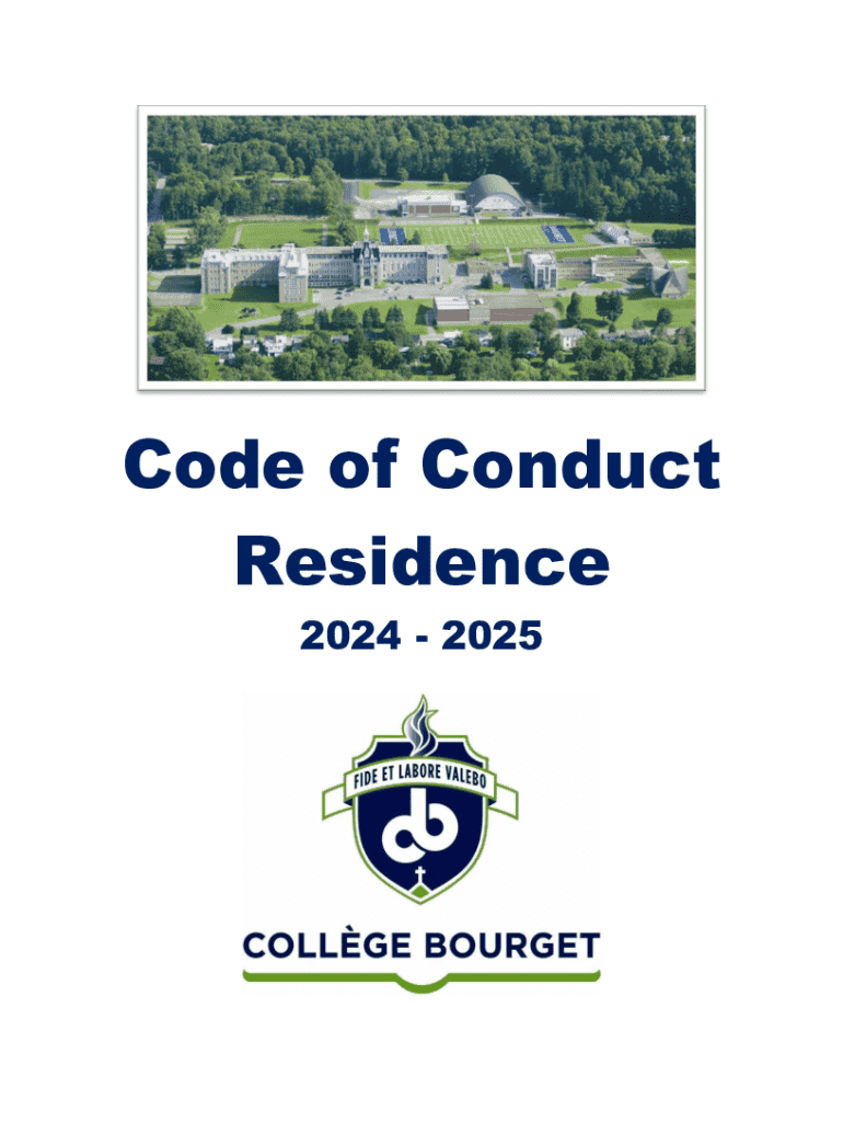 This document outlines the Code of Conduct for residents at College Bourget for the 2024-2025 academic year. It describes expectations, rights, responsibilities, dress code, and rules for maintaining a safe and respectful living environment. It aims to foster a positive community where residents can thrive both socially and academically.