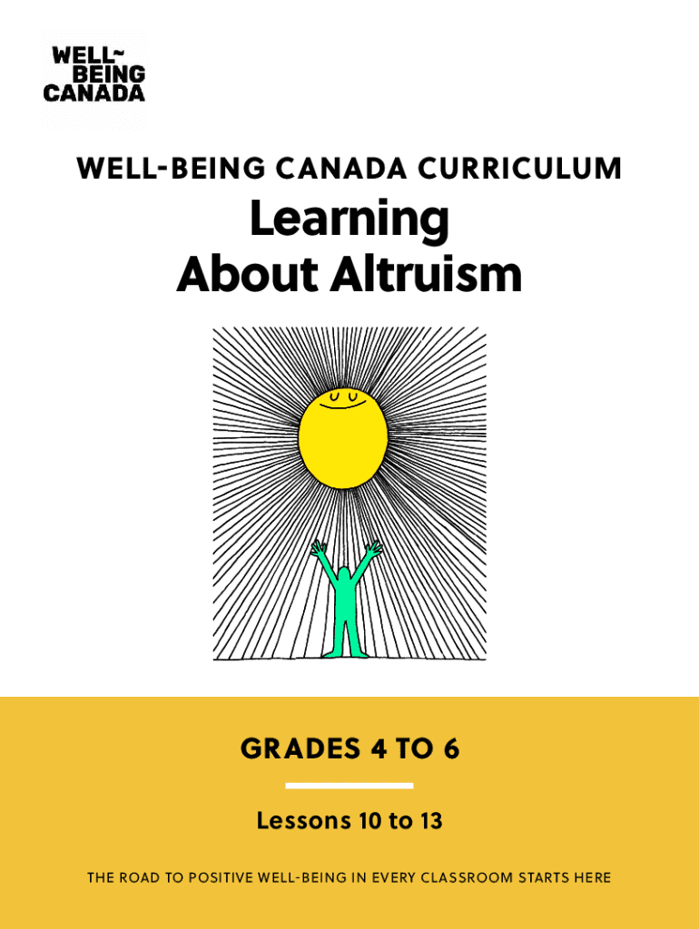 WELLBEING CANADA CURRICULUMLearning About AltruismGRADES 4 TO 6 Lessons 10 to 13 THE ROAD TO POSITIVE WELLBEING IN EVERY CLASSROOM STARTS HEREWellbeing Canada is an educational program that uses evidencebased