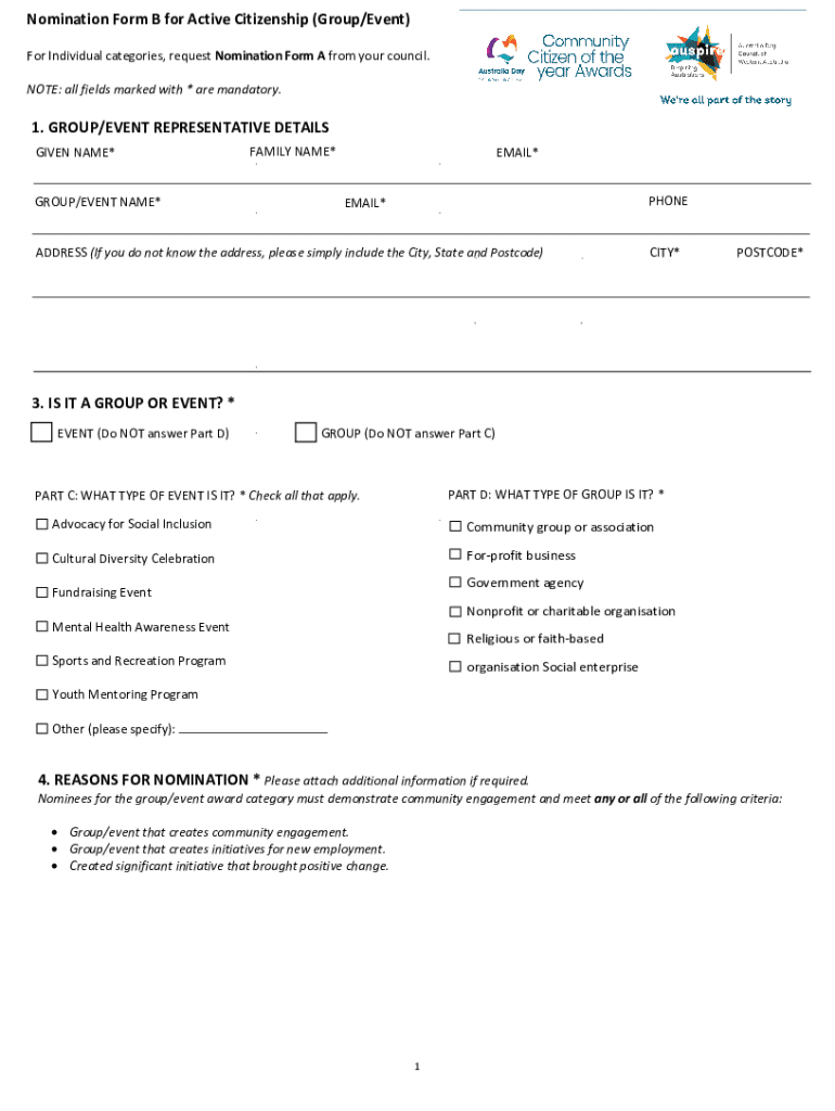 Get the free Nomination Form B for Active Citizenship (group/event)