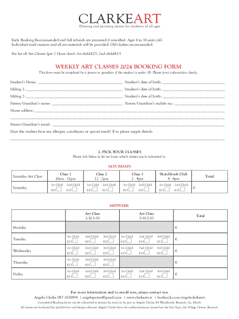 CLARKEART Drawing and painting classes for students of all agesEarly Booking Recommended and full refunds are promised if cancelled. Ages 6 to 16 years old. Individual work stations and all art materials