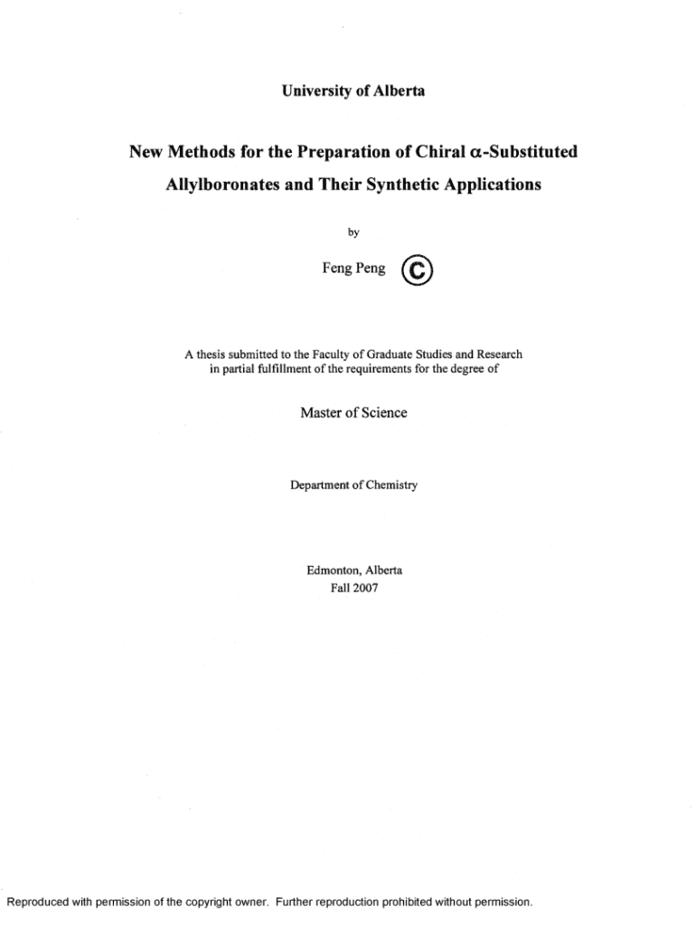 University of AlbertaNew Methods for the Preparation of Chiral aSubstituted Allylboronates and Their Synthetic Applications byFeng PengA thesis submitted to the Faculty o f Graduate Studies and Research