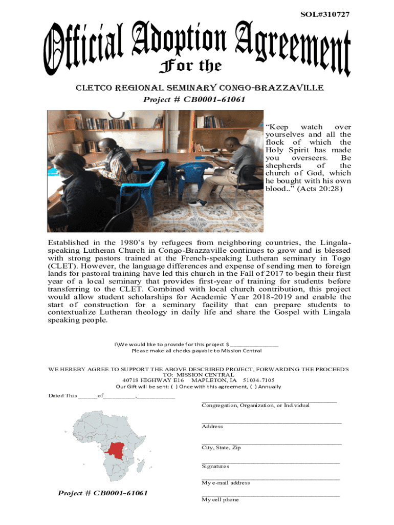 SOL#310727CLETCO Regional Seminary CongoBrazzaville Project # CB000161061 Keep watch over yourselves and all the flock of which the Holy Spirit has made you overseers. Be shepherds of the church of