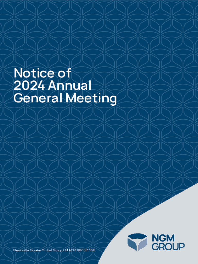Notice of 2024 Annual General MeetingNewcastle Greater Mutual Group Ltd ACN 087 651 992 1Notice of Meeting Notice is given that the 2024 Annual General Meeting (AGM) of Newcastle Greater Mutual Group
