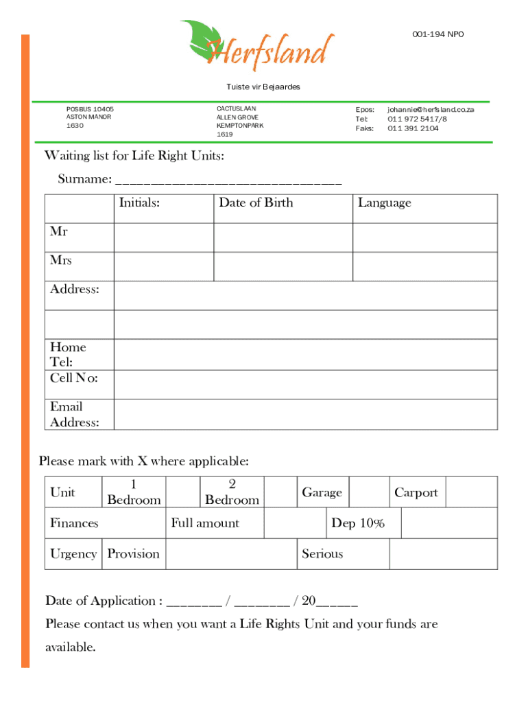 To fill out the waiting list for life, individuals should complete a designated application form, providing requested personal information and details about their circumstances.