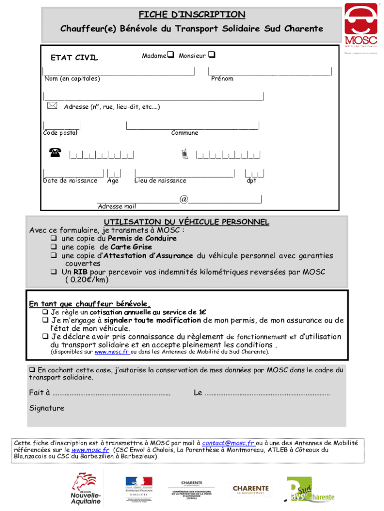 Comment remplir fiche dinscription chauffeure bnvole