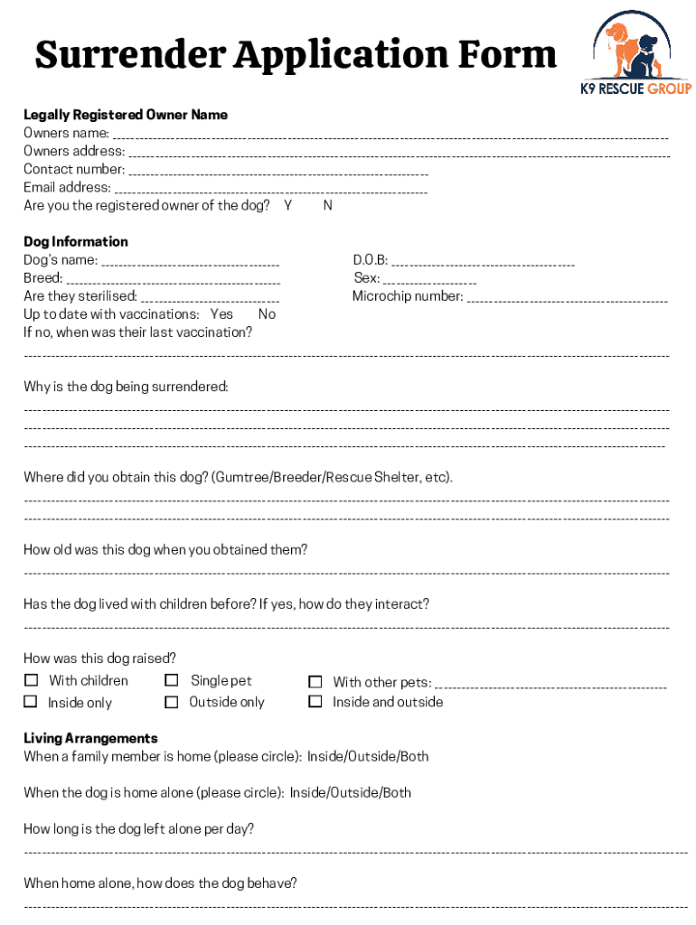 Get the free K9 Rescue Group (Inc) Surrender Application Form