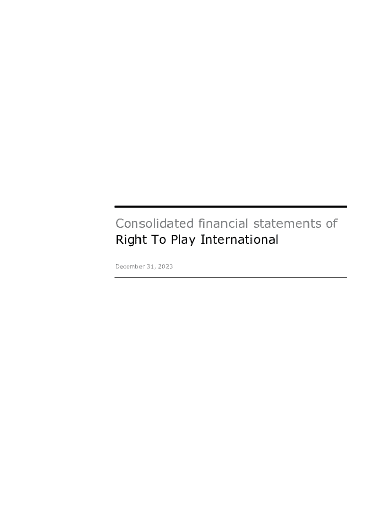 Consolidated financial statements of Right To Play International December 31, 2023Independent Auditors Report12Consolidated statement of financial position3Consolidated statement of operations4Consolidated