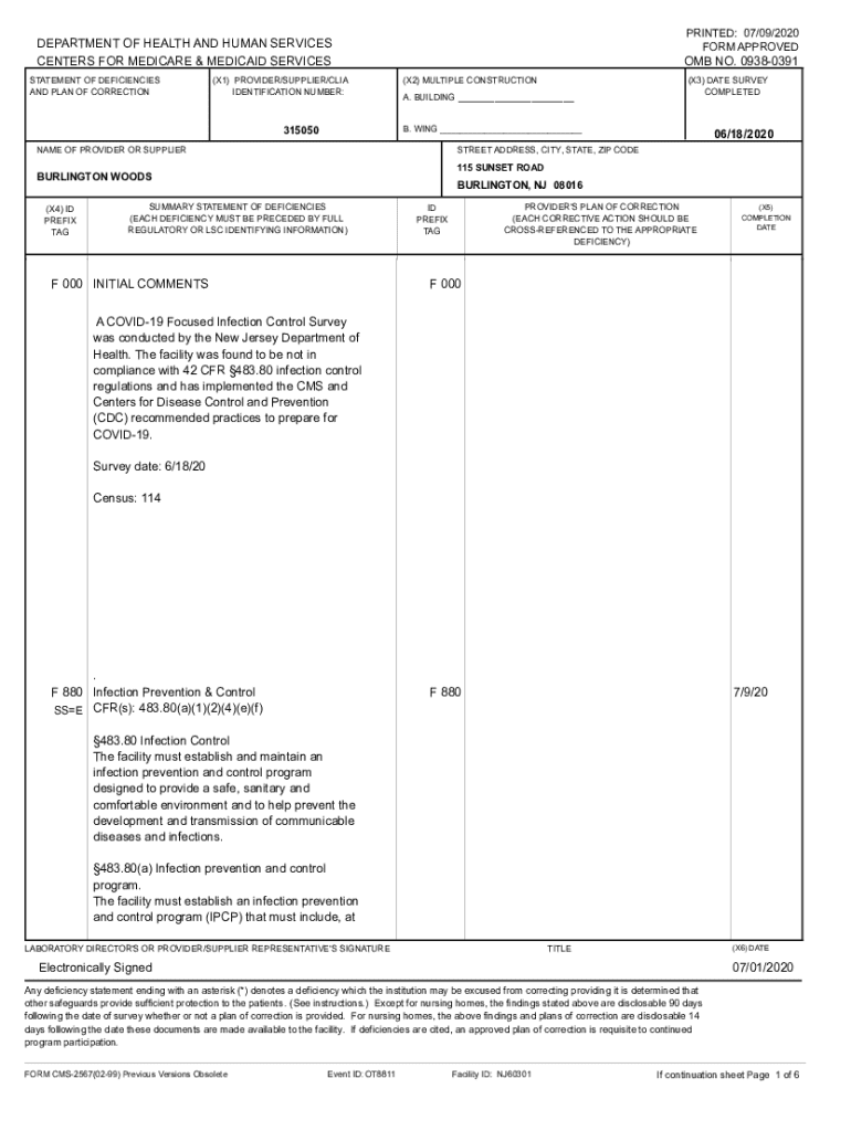 PRINTED: 07/09/2020 FORM APPROVEDDEPARTMENT OF HEALTH AND HUMAN SERVICES CENTERS FOR MEDICARE & MEDICAID SERVICES STATEMENT OF DEFICIENCIES AND PLAN OF CORRECTION(X1) PROVIDER/SUPPLIER/CLIA IDENTIFICATION