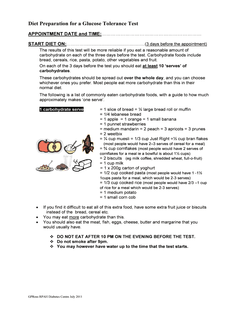 Get the free Diet Preparation for a Glucose Tolerance Test
