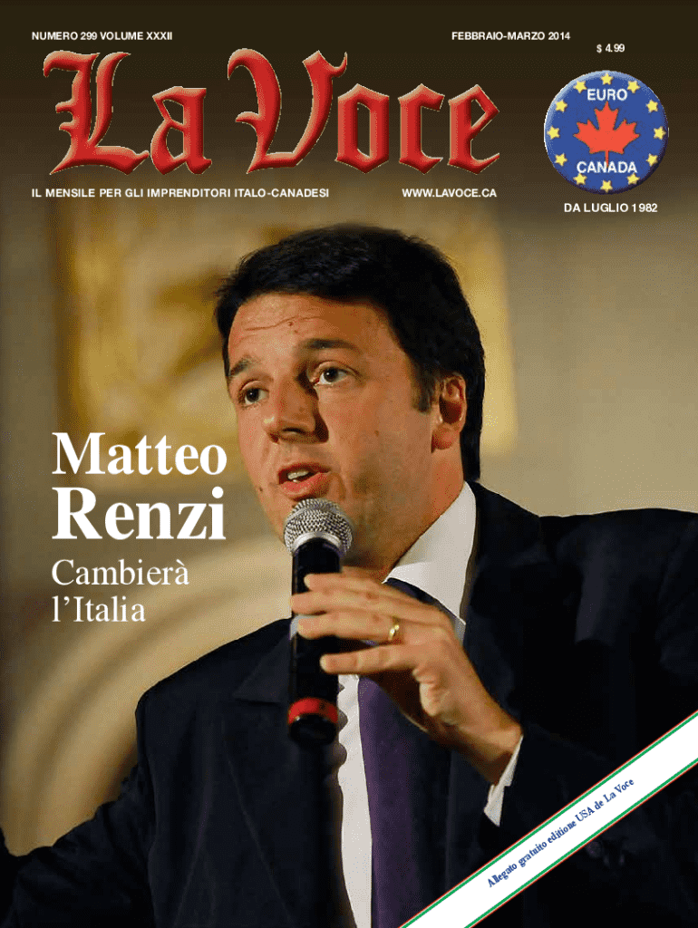 NUMERO 299 VOLUME XXXIIIL MENSILE PER GLI IMPRENDITORI ITALOCANADESIFEBBRAIOMARZO 2014WWW.LAVOCE.CA$ 4.99DA LUGLIO 1982MatteoRenzi Cambier lItaliaegAlluratg atoiondite itoeAdS eUce Vo a L2FebbraioMarzo2014