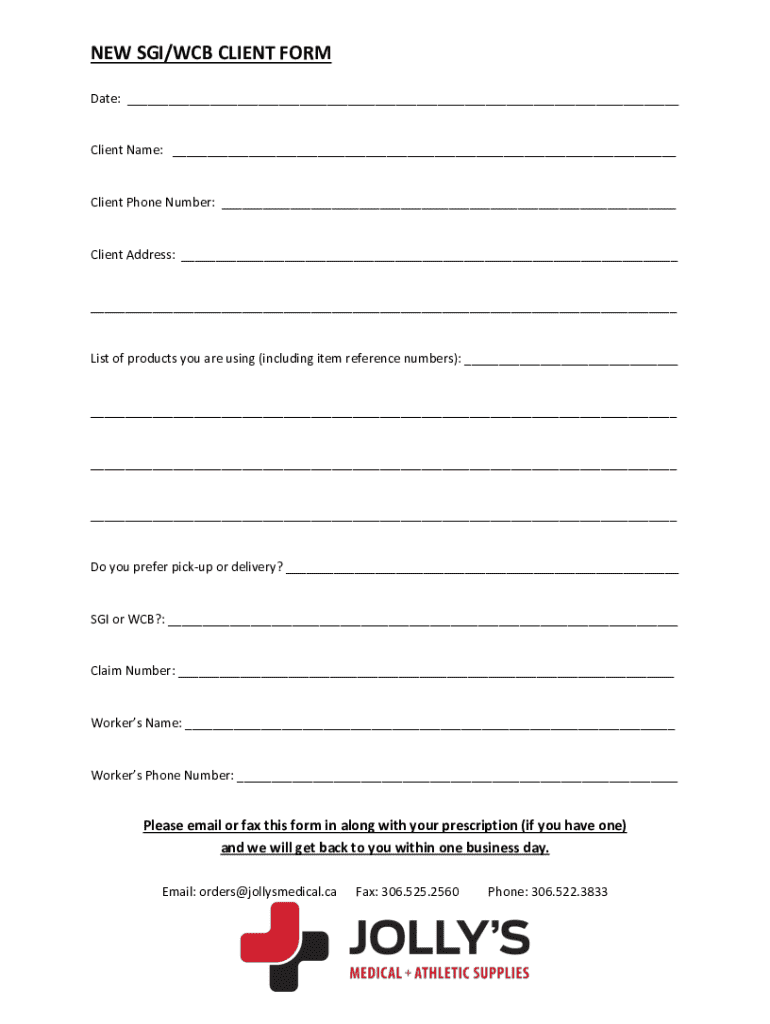 Get the free NEW SGI/WCB CLIENT FORM