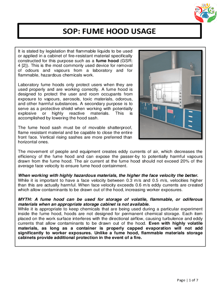 Sop Fume Hood Usage is not the form you're looking for?Search for another form here.
