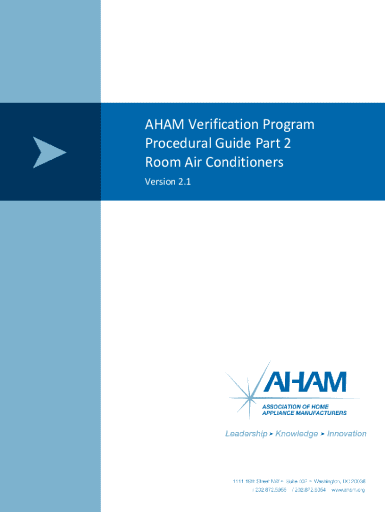 AHAM Verification Program Procedural Guide Part 2 Room Air Conditioners Version 2.1p1p1Sponsor: Association of Home Appliance Manufacturers (AHAM) 1111 19th St. NW, Suite 402 Washington, DC 20036