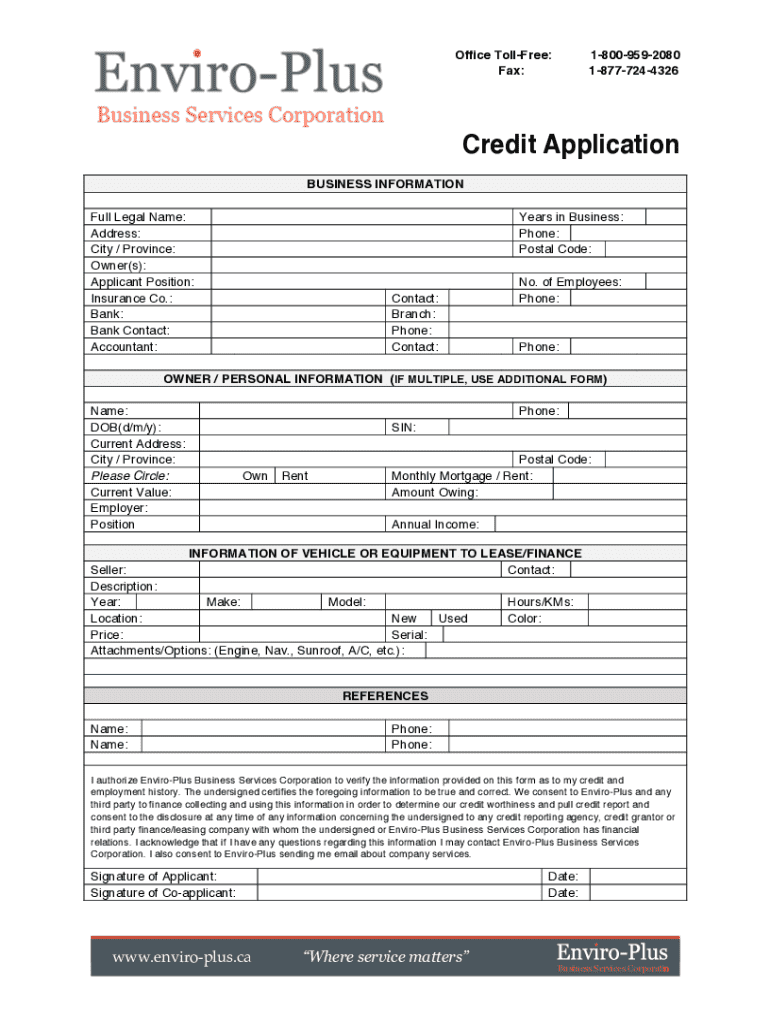 Office TollFree: Fax:18009592080 18777244326Credit Application BUSINESS INFORMATION Full Legal Name: Address: City / Province: Owner(s): Applicant Position: Insurance Co.: Bank: Bank Contact: Accountant:Years