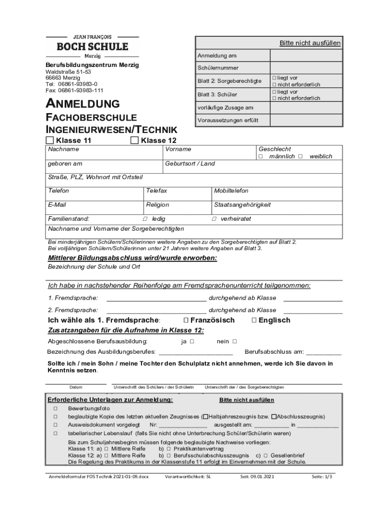 Bitte nicht ausfllen Anmeldung amBerufsbildungszentrum MerzigSchlernummerWaldstrae 5153 66663 Merzig Tel: 06861939830 Fax: 0686193983111Blatt 2: Sorgeberechtigte Blatt 3: SchlerANMELDUNGvorlufige