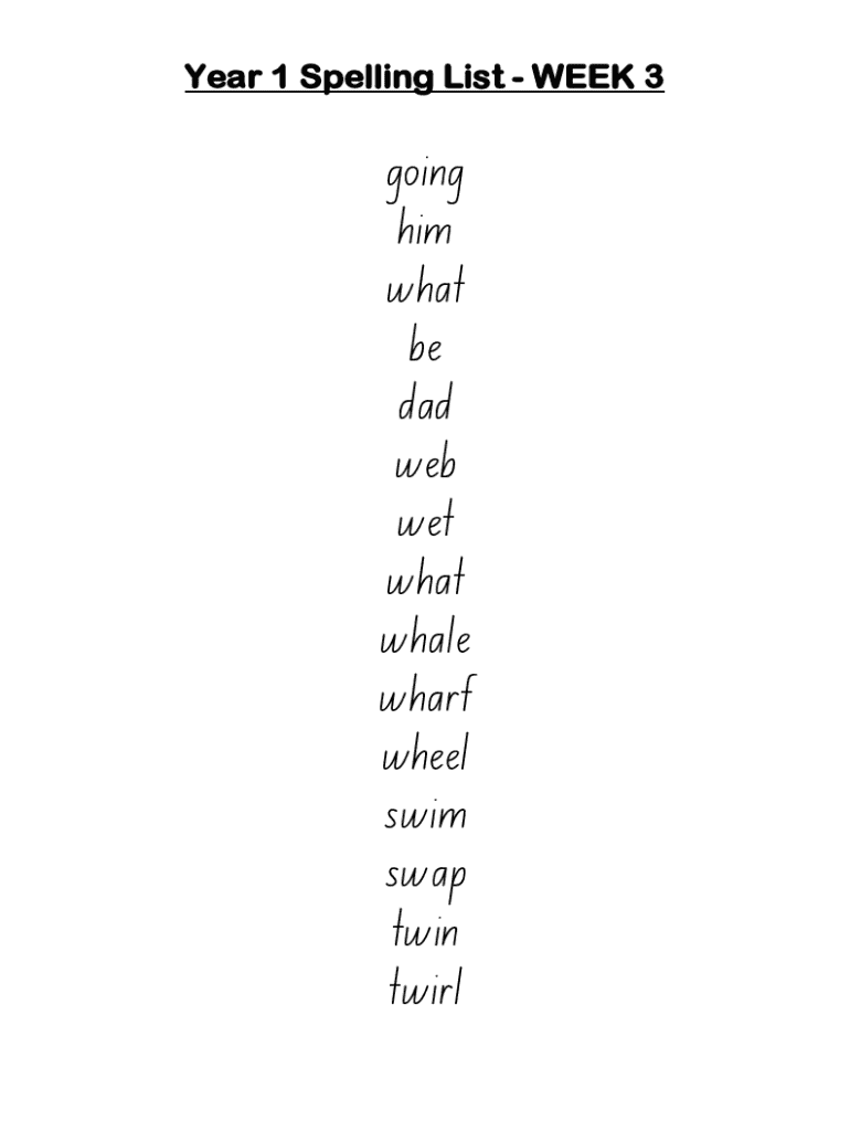 The year 1 spelling list is a collection of words that children are expected to learn and be able to spell by the end of their first year of schooling.