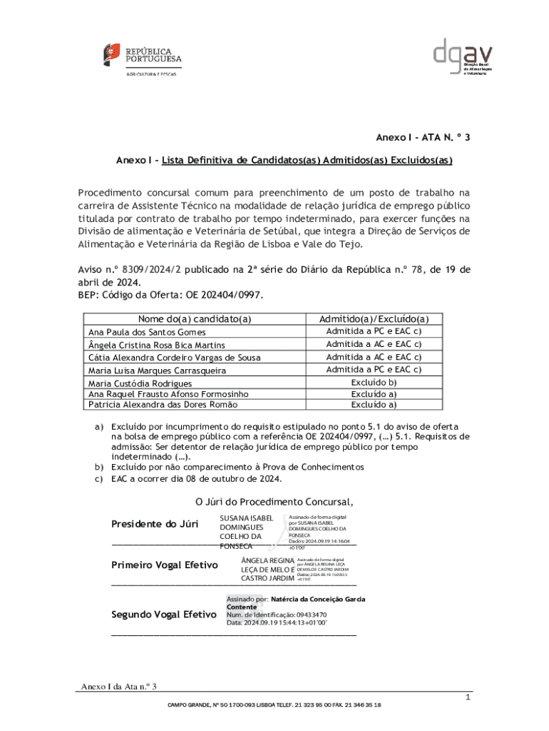 Anexo I ATA N. 3 Anexo I Lista Definitiva de Candidatos(as) Admitidos(as) Excludos(as) Procedimento concursal comum para preenchimento de um posto de trabalho na carreira de Assistente Tcnico na modalidade