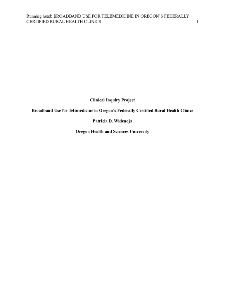Get the free Broadband Use for Telemedicine in Oregon’s Federally Certified Rural Health Clinics