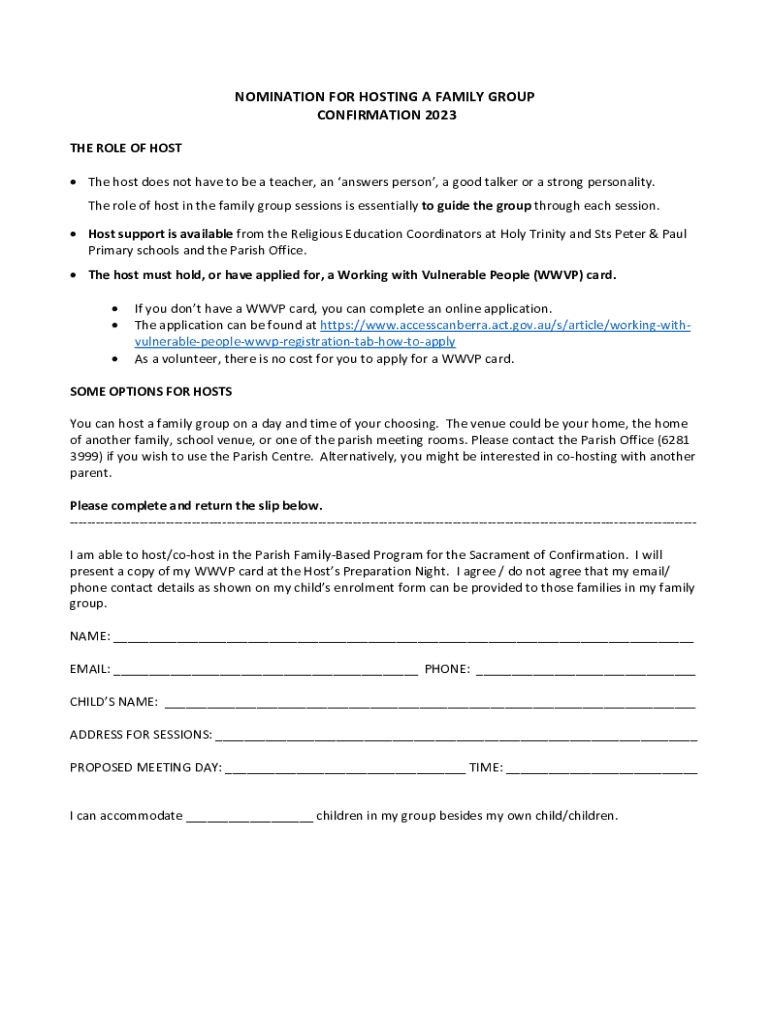 Get the free Nomination for Hosting a Family Group Confirmation 2023