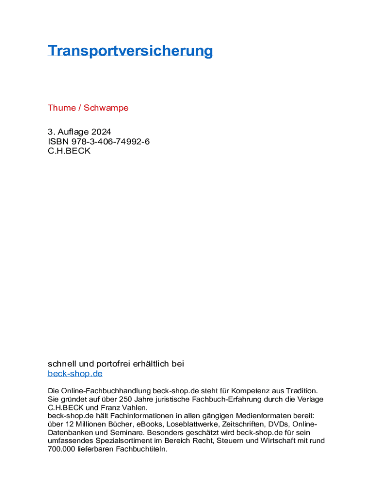 TransportversicherungThume / Schwampe 3. Auflage 2024 ISBN 9783406749926 C.H.BECKschnell und portofrei erhltlich bei beckshop.de Die OnlineFachbuchhandlung beckshop.de steht fr Kompetenz aus Tradition.