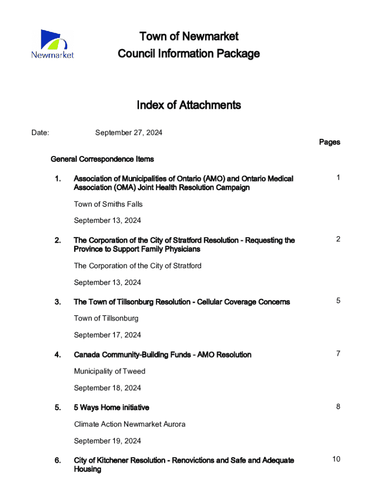 This document contains resolutions and correspondence from various municipalities regarding various topics including health care, family physicians support, cellular coverage concerns, housing issues, population estimates, and municipal elections act updates. It details the actions taken by several town councils to address local and provincial issues affecting their communities.