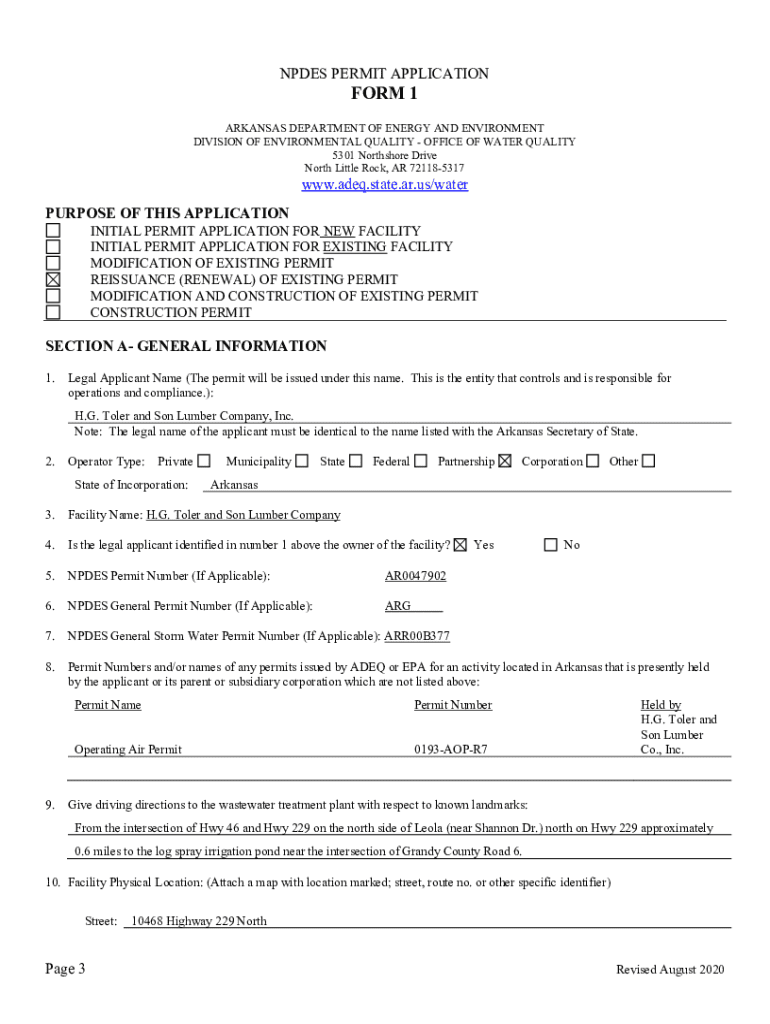 Get the free Npdes Permit Application Form 1