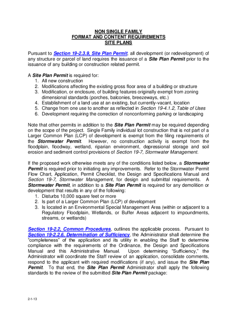 NON SINGLE FAMILY FORMAT AND CONTENT REQUIREMENTS SITE PLANS Pursuant to Section 192.3.9, Site Plan Permit, all development (or redevelopment) of any structure or parcel of land requires the issuance
