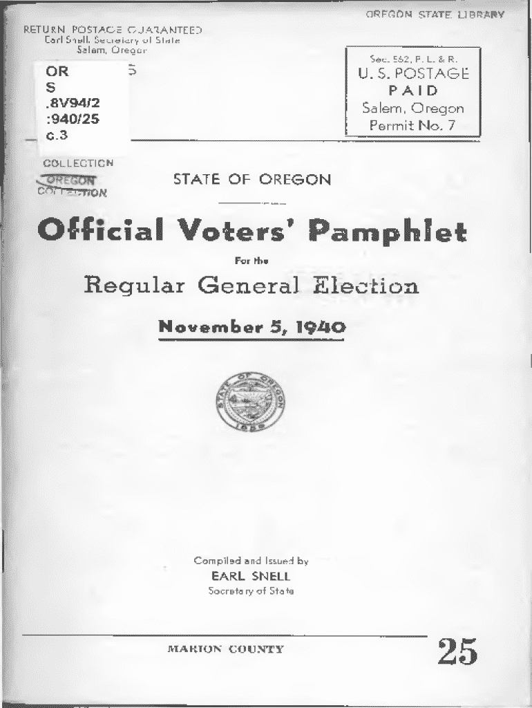 Get the free Official Voters* Pamphlet - State Library of Oregon - library state or