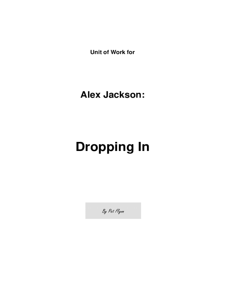 Unit of Work forAlex Jackson:Dropping InBy Pat FlynnIntroduction Welcome to the world of Alex Jackson. A world created for young readers to laugh and learn as they enter via their imagination, a place