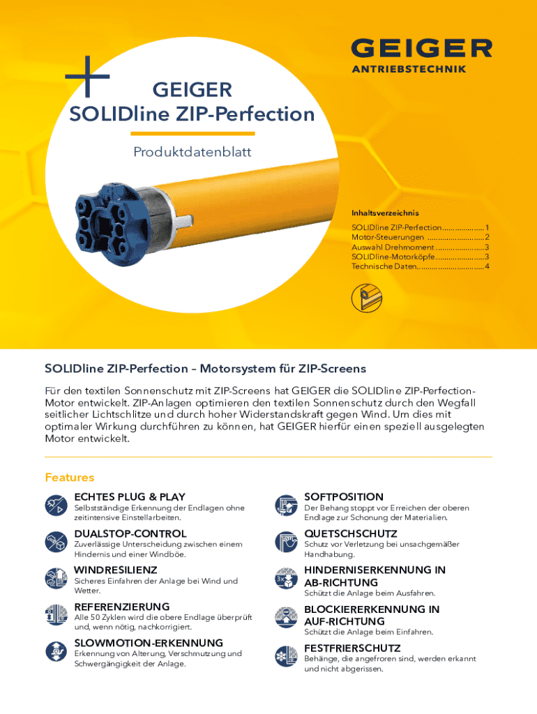GEIGER SOLIDline ZIPPerfection ProduktdatenblattInhaltsverzeichnis SOLIDline ZIPPerfection.....................1 MotorSteuerungen ............................2 Auswahl Drehmoment........................3