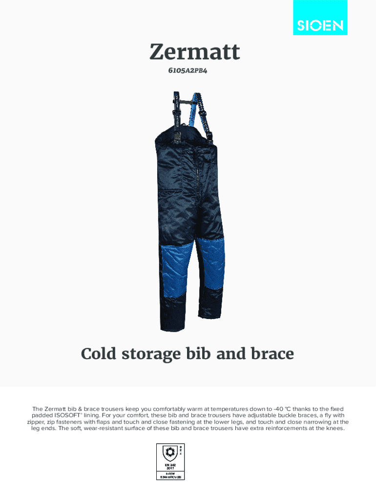 Zermatt 6105A2PB4Cold storage bib and braceThe Zermatt bib & brace trousers keep you comfortably warm at temperatures down to 40 C thanks to the fixed padded ISOSOFT lining. For your comfort, these