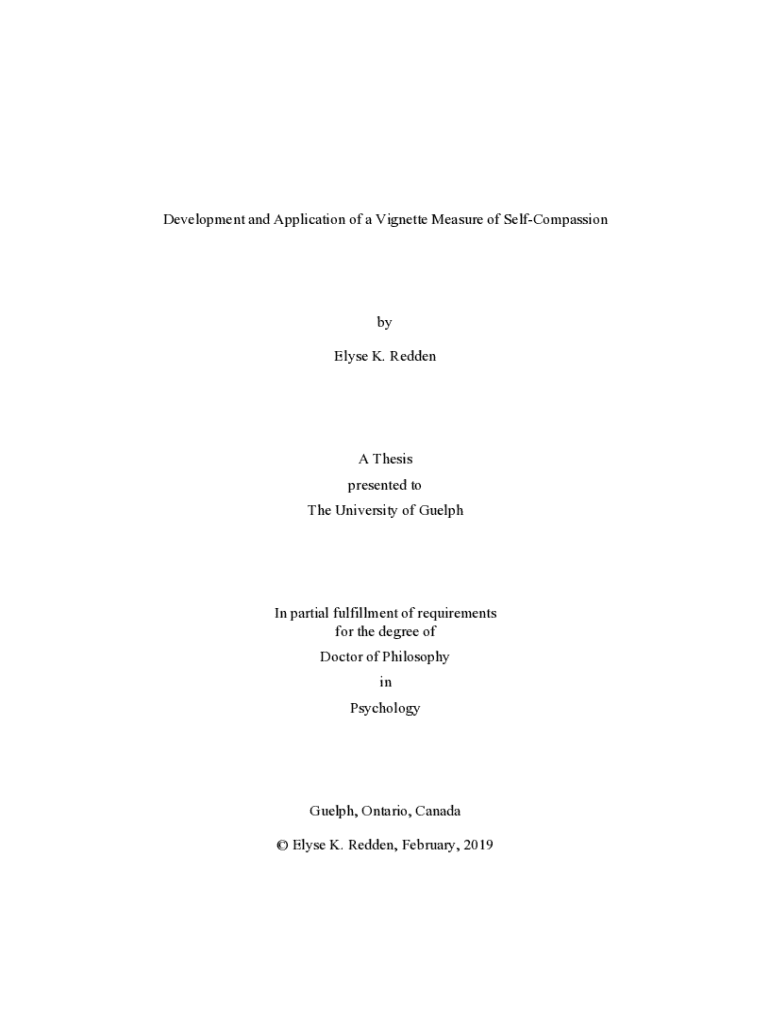 Development and Application of a Vignette Measure of SelfCompassionby Elyse K. ReddenA Thesis presented to The University of GuelphIn partial fulfillment of requirements for the degree of Doctor of