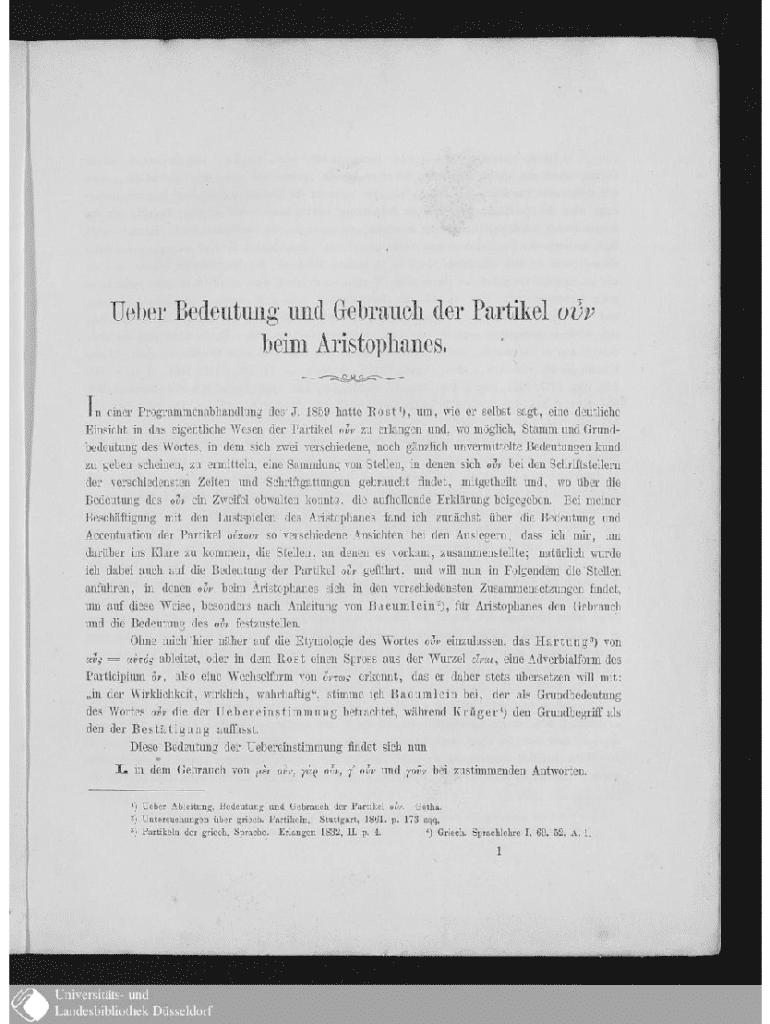 Ueber Bedeutung und Gebrauch der Partikel ovv beim Aristoplianes.IneinerProgrammenabhandlungEinsichtindasbedeutung zudesgebendereigentliche Wortes,scheinen,desovvdarberinsdabeiauchanfhren,undavginaufBedeutungdesOhnehierParticipiummichinderdesWortesdenderinindiederPartikelAristoplianessichesichvorkam,eineStammbeidenberdenverschiedenstenberBeidiemeinerichund
