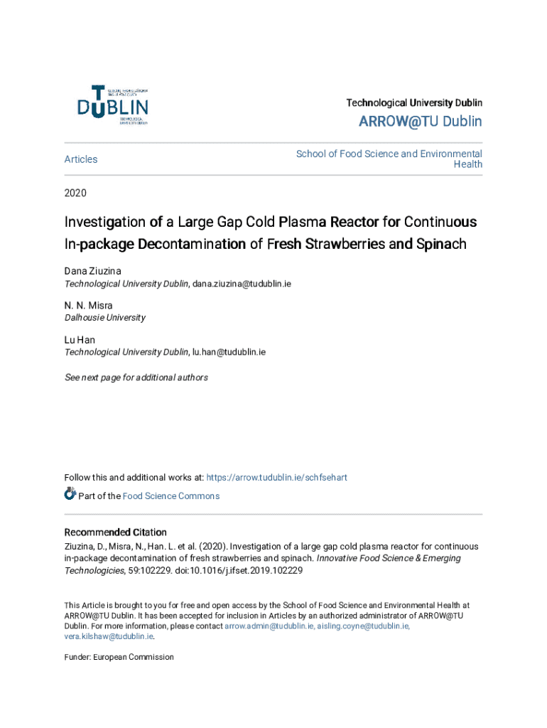 Technological University DublinARROW@TU Dublin ArticlesSchool of Food Science and Environmental Health2020Investigation of a Large Gap Cold Plasma Reactor for Continuous Inpackage Decontamination