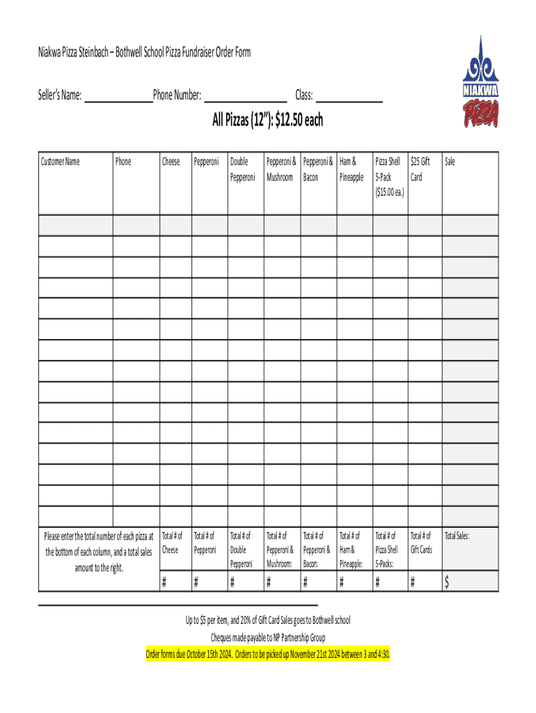 Get the free Niakwa Pizza Steinbach - Fundraiser Order Form (Template Jan 2023)
