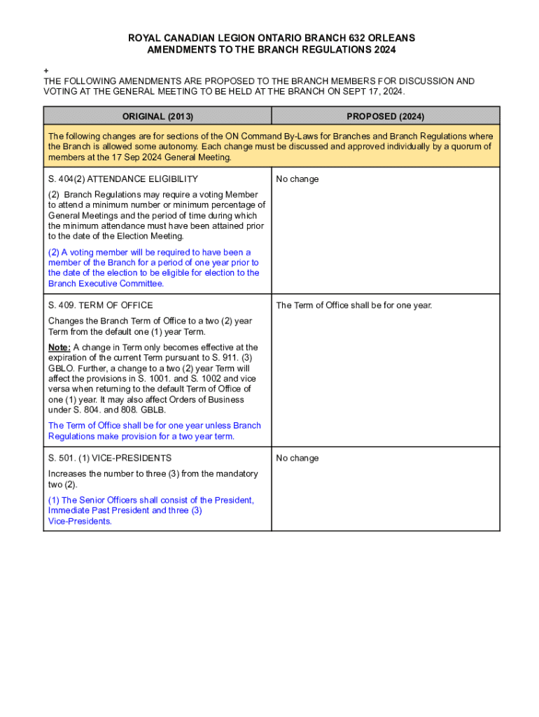 ROYAL CANADIAN LEGION ONTARIO BRANCH 632 ORLEANS AMENDMENTS TO THE BRANCH REGULATIONS 2024 + THE FOLLOWING AMENDMENTS ARE PROPOSED TO THE BRANCH MEMBERS FOR DISCUSSION AND VOTING AT THE GENERAL MEETING