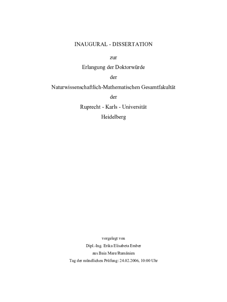 INAUGURAL DISSERTATION zur Erlangung der Doktorwrde der NaturwissenschaftlichMathematischen Gesamtfakultt der Ruprecht Karls Universitt Heidelbergvorgelegt von Dipl.Ing. Erika Elisabeta Ember aus