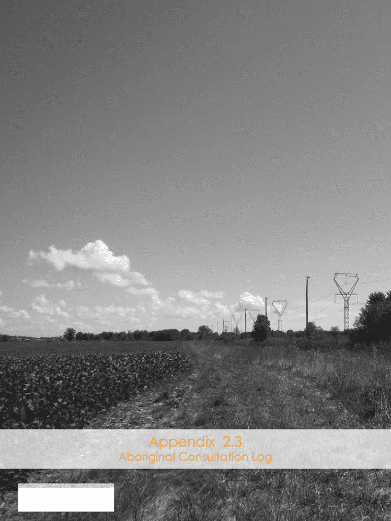 VlTalbotville WWTP Schedule C Municipal Class Environmental AssessmentAboriginal Consultation LogDate/ Method ContactofInformationCorrespondenceReceivedand/ or ProjectInformationConsultantDistributedResponseCommunicationMinistry