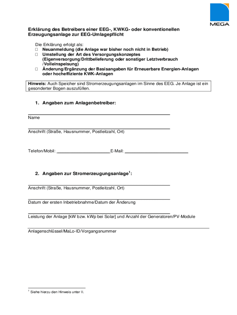Holen Sie sich kostenlos Erklrung des Betreibers einer KWKG