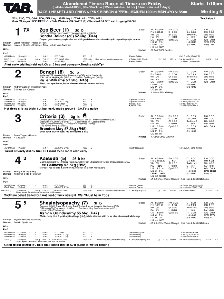 Fill out your nztr - timaru races online with pdfFiller!