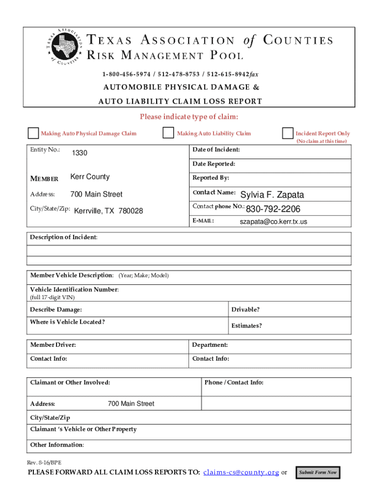 Get the free Auto Liability-Loss Claim Form - Kerr County