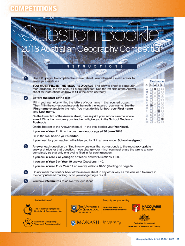 COMPETITIONSQuestion Booklet 2018 Australian Geography Competition I N1S T R U C T I ONSUse a 2B pencil to complete the answer sheet. You will need a clean eraser to erase your mistakes. YOU MUST