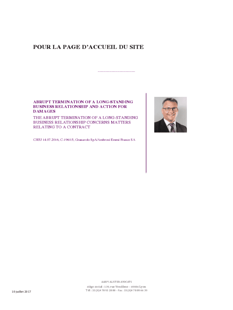 POUR LA PAGE DACCUEIL DU SITE___ABRUPT TERMINATION OF A LONGSTANDING BUSINESS RELATIONSHIP AND ACTION FOR DAMAGES THE ABRUPT TERMINATION OF A LONGSTANDING BUSINESS RELATIONSHIP CONCERNS MATTERS RELATING